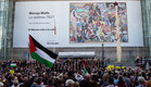 תפילה בטיימס סקוור ודגלי פלסטין בסן פרנסיסקו