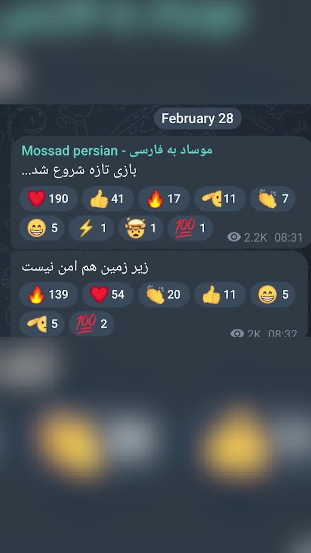 חשבון טלגרם בפרסית שמזוהה עם המוסד: "המשחק רק התחיל - אפילו המקלטים לא יהיו בטוחים"חשבון טלגרם בפרסית שמזוהה עם המוסד: "המשחק רק התחיל - אפילו המקלטים לא יהיו בטוחים"28.02.2026