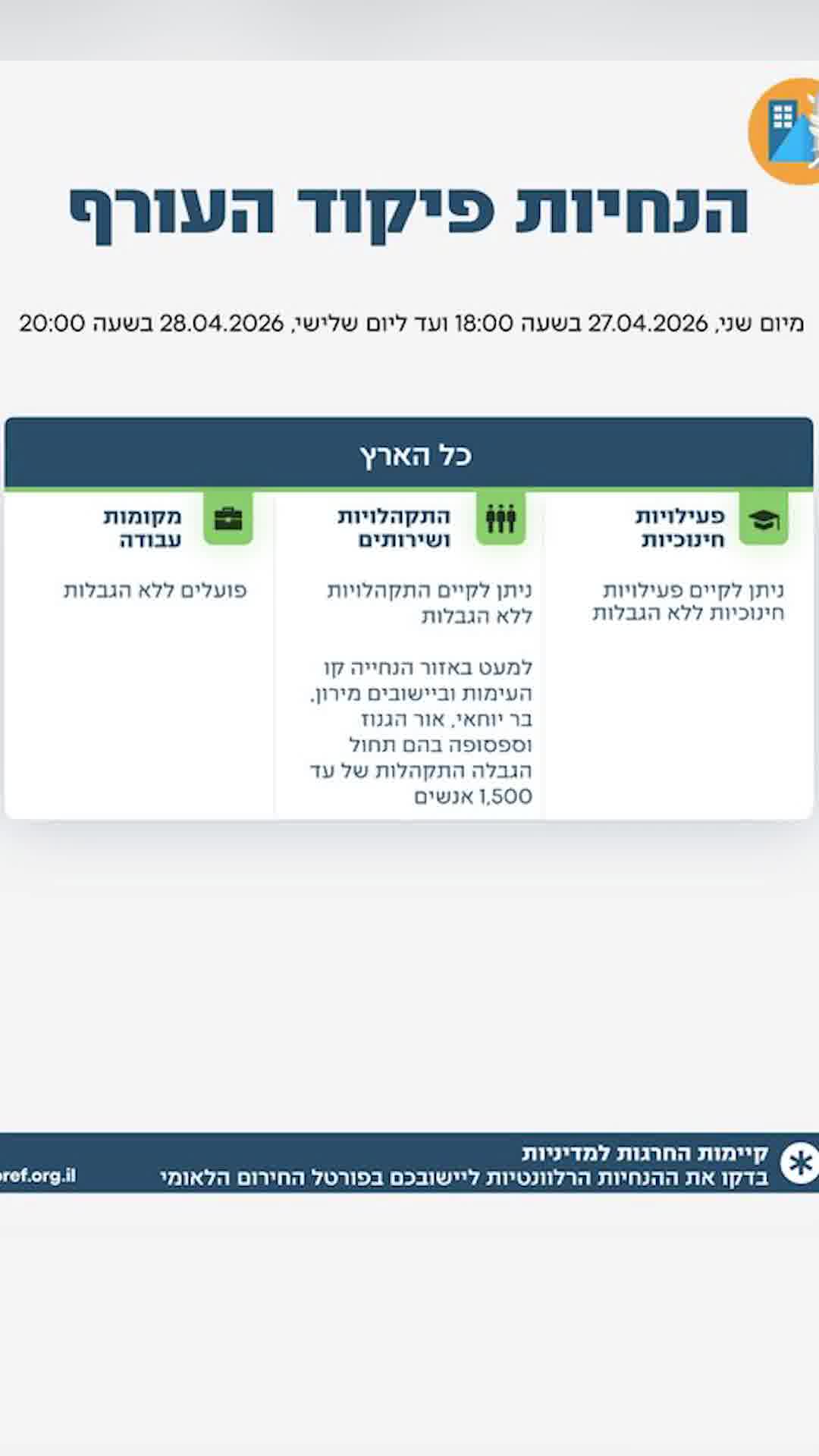 אלו ההנחיות המעודכנות של פיקוד העורף