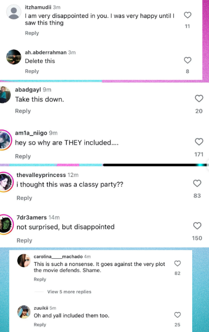 אחרי אותה מחאה, בעמוד האינסטגרם של Wicked מחקו את פוסט הקידום, והגולשים המוחים הביעו את שמחתם דרך תגובות שהגיבו על פוסטים אחרים: "תודה שמחקתם את זה"; "בבקשה תשתדלו יותר בפעם הבאה", כתבו גולשים, ואחרים פשוט מילאו את האינסטגרם שלהם בתמונות של דגל פלסטין.
