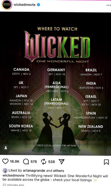 הסרט המדובר, בכיכובן של אריאנה גרנדה וסינתיה אריבו, צפוי לעלות לאקרנים בחודש הבא, וכחלק מהחגיגות לקראת, רשת NBC תעלה את הספיישל Wicked: One Wonderful Night - חגיגה מוזיקלית בת שעתיים בהשתתפות כוכבי הסרט. לאחרונה, המעריצים גילו שהספיישל מתוכנן לשידור בישראל - והם ממש לא אהבו את זה.