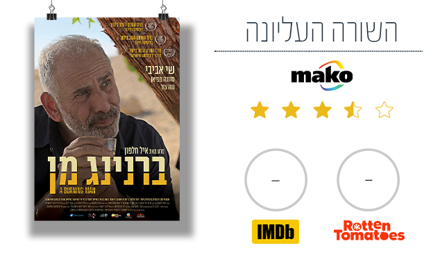 ברגעים הכי טובים שלו, "ברנינג מן" הוא סרט על אדם שלא יודע לאן ללכת. הנישואים שלו הסתיימו וכבר יש לו דירה משלו, אבל הוא צריך לפנות אותה וניכר בו שהוא עושה הכל כדי לא למצוא אחת אחרת; כשהבן שלו צריך לחזור לבסיס באיזה חור בדרום, הוא מתנדב להסיע אותו לשם ואז פשוט נשאר שם בהחלטה של רגע, כאילו שהקרבה שלו תגן איכשהו על הילד. ברגעים האלה, סרטו של אייל חלפון ("קרקס פלשתינה") הוא אירוע נדיר ומשמח בקולנוע שלנו: יצירה שעושה מהמדבר הישראלי את הנוף הקולנועי האדיר שהוא יכול להיות. שמצד אחד לוקחת הפסקה מהמציאות שלנו, ומצד שני דווקא בגלל זה נוגעת בה באופן מיוחד ועמוק. חבל רק שברגעים הפחות טובים שלו, הסרט הזה ממש פועל נגד עצמו.