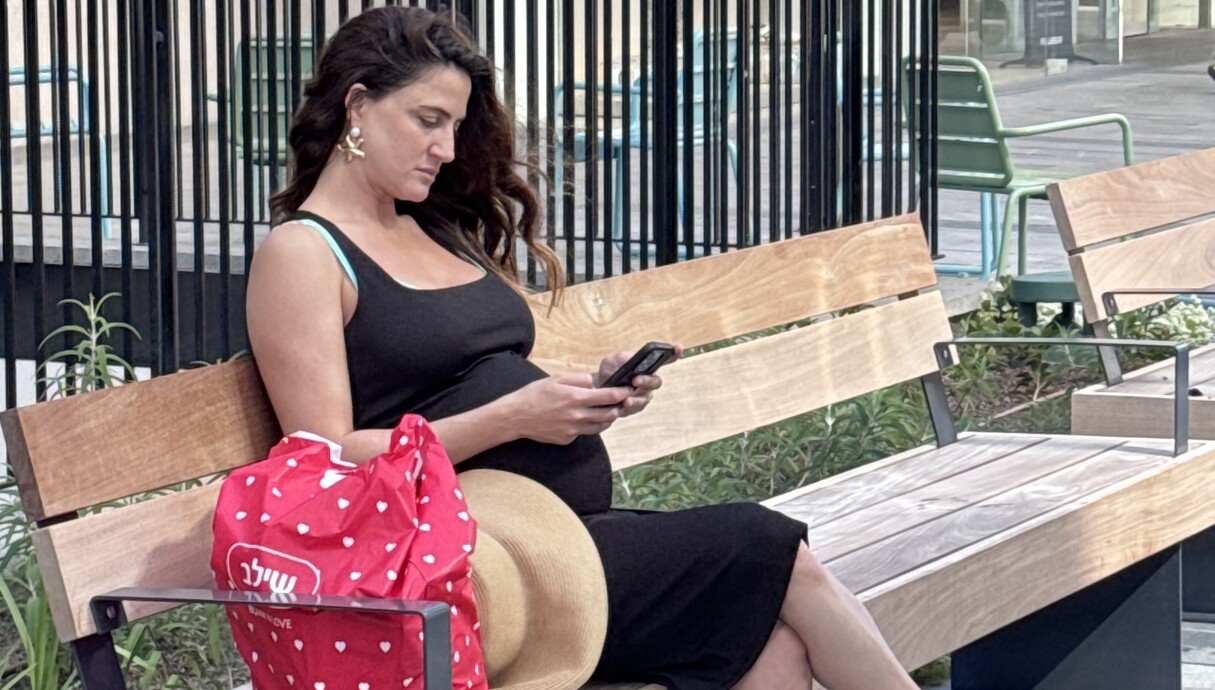היא נחה לרגע על הספסל ברחוב כי בכל זאת - הבייבי באמפ המתוקה של חודש תשיעי היא לא דבר שקל לסחוב