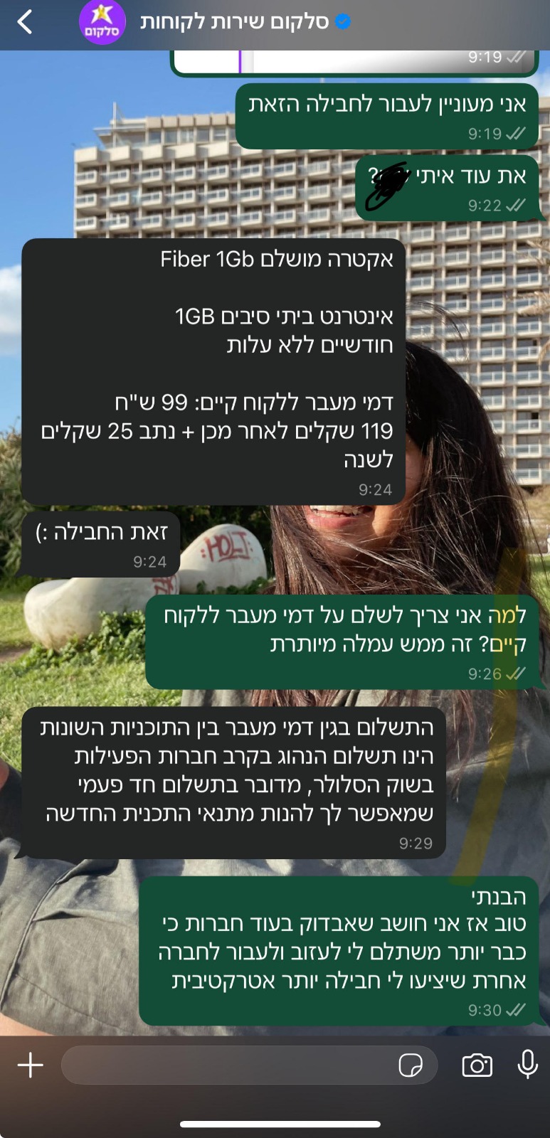 יניב פורת, לקוח ותיק של סלקום, גילה את אחת התופעות המקוממות בשוק התקשורת הישראלי – עמלת "מעבר חבילה". נשמע מוכר? אולי כי זה קורה ליותר לקוחות ממה שחשבתם.