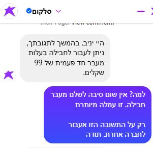 בעקבות המקרה, פורת פרסם פוסט בפייסבוק. אז החלו לזרום אליו עדויות נוספות, של סלקום ושל עוד חברות במשק. לקוחות מספרים על אותה תבנית בדיוק – ניסיון לשדרג חבילה, דרישה לעמלה, ומשא ומתן שמתנהל כאילו מדובר בשוק, לא בחברת תקשורת מסודרת. "אמרו לי שזה דמי טיפול. שאלתי: טיפול במה? זה שינוי אוטומטי! אחרי ויכוח של עשר דקות פתאום נזכרו לוותר לי", סיפר אחד המגיבים לפוסט.