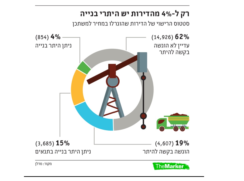 לפי בדיקת מדלן, הקבלנים משתהים בהגשת בקשות להיתרים - אף שהם ניתנים מהר יותר מאשר בפרויקטים רגילים. להערכת מדלן, עד 2019 יאוכלסו רק 5.5% מהפרויקטים