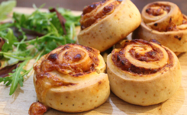 4 מגלגלים לגלילה מהודקת ומניחים אותה כשהתפר כלפי מטה. חותכים לפרוסות ברוחב 2 ס"מ. מניחים את הפרוסות בתבנית אפייה מרופדת בנייר אפייה, כשהצד החתוך כלפי מעלה. משאירים רווחים בין השבלולים. אופים כ-20 דקות, עד שהשבלולים מתחילים להשחים. גיוונים: • אפשר להוסיף זיתים קצוצים. • אפשר למרוח רוטב פסטו (במקום רוטב העגבניות) ולהוסיף עגבניות מיובשות קצוצות, גבינה בולגרית מפוררת או גבינת קשקבל.הכנתם? ספרו לנו איך יצא!