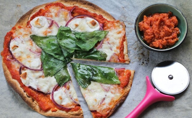 אופן ההכנה:1 מתחילים עם הרוטב: טוחנים במעבד מזון קטן את שן השום. מוסיפים עגבנייה חתוכה לרבעים, כף או שתיים של רסק עגבניות, שמן זית ומלח. טוחנים, טועמים ומתקנים תיבול. 2 מחממים תנור לחום של 210 מעלות. 3 מניחים 2 טורטיות על תבנית מרופדת בנייר אפייה. מורחים ככף רסק על כל אחת, מוסיפים בצל, מוצרלה ופטה ומכניסים לתנור ל-10 דקות. 4 בינתיים, מערבבים בקערה את עלי התרד עם זרזיף קטן של שמן זית (פחות מכפית), כך שכל העלים יצופו בשמן. 5 אחרי 10 דקות של אפייה, מעבירים את התנור למצב גריל עליון, מוסיפים את עלי התרד מעל הטורטיות ואופים עוד כ-3 דקות. * את הרוטב שנשאר אוכלים עם הפיצה בצד, הוא נהדר. * לא חייבים לדבוק כמובן במתכון - אפשר להחליף גבינות (צהובה, בולגרית, צפתית, עזים וכו'), אפשר להחליף תוספות ואפשר להוסיף גם עשבי תיבול. >> בשבוע שעבר הכנו פריטטה תפוחי אדמה וחלומי>> הצביעו והשפיעו: מה נאכל בשבוע הבא?