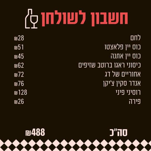 המנה האחרונה שהזמנו סיכמה סופית את הטיעון על כובד המנות. חברתי לשולחן התעקשה שבמקום לדגום את אחת מאפשרויות השיפודים בתפריט ננסה את הרוסיני פיני (128 שקלים) - גראטן עגל שעליו כבד אווז, עם רוטב מדיירה ופטריות מורל. לצידו הזמנו "כף" פירה (26 שקלים), שהתבררה כקערה לא קטנה בכלל של פירה חמאתי וקרמי מאוד שקשה לאכול המון ממנו. מנת הבשר הייתה קלאסית ומוצלחת, אם כי יש משהו מעט אנכרוניסטי וגם תמוה באכילת כבד אווז בשנת 2026, במיוחד בישראל רווית המלחמות והצרות. ציר היין המחוזק והפטריות החמיאו מאוד לנתחי הבשר שנחתכו בדקיקות, ושילבו בין שומן לבשר עגל בצורה חכמה תוך שימוש בנתח פחות יוקרתי מזה שעליו מבוססת מנת הטורנדו רוסיני המוכרת. מה שכן, ללא ספק היה אפשר לגרוע שלל אלמנטים ולהישאר עם מנה הרבה פחות יקרה והרבה פחות מכבידה. כבד האווז עצמו, למשל, לא באמת הכרחי כדי להעשיר צלחת כזאת. אפילו הקטנת המנה במידת מה הייתה מועילה לדיוק, וגם הופכת את העסק לפחות מרתיע מבחינת מחיר.