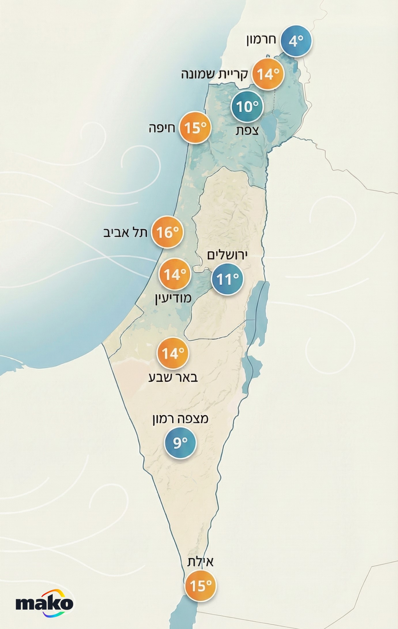 ביום ראשון יחל באופן רשמי חורף 2026 וכבר בימים הקרובים נתחיל להרגיש בירידה חדה בטמפרטורות שתשכיח לחלוטין את הסתיו החם שעבר עלינו. מחר וביום חמישי צפויים להיות הימים הקרים ביותר עד כה עם טמפרטורות נמוכות במיוחד שבחלק מהמקומות יגיעו ל-0 מעלות במהלך הלילה.