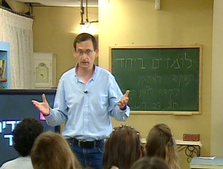 דב חנין מעביר שיעורים על איכות הסביבה לילדי הדרום
