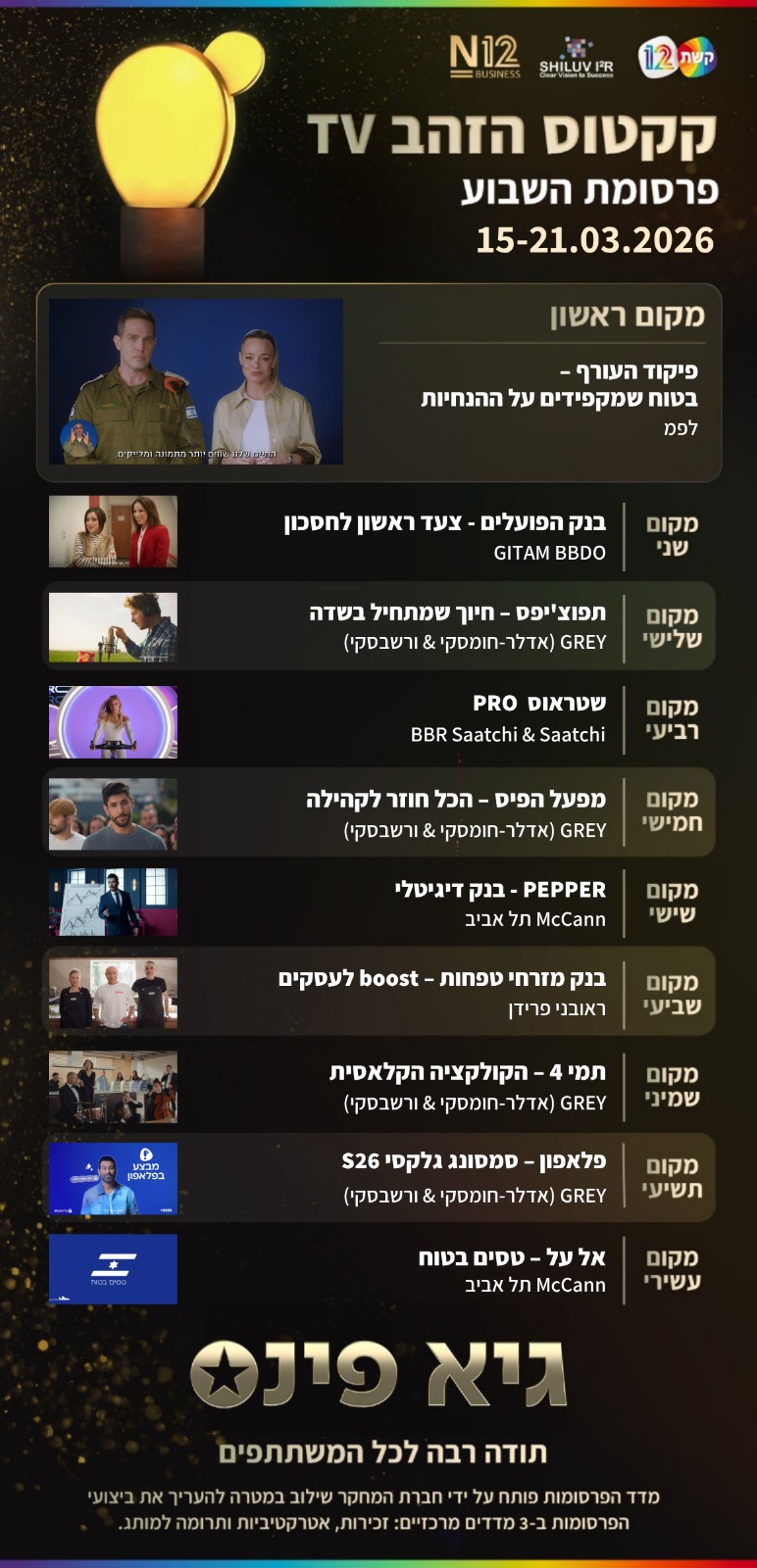 ואילו פרסומות נוספות זכו בדירוג?