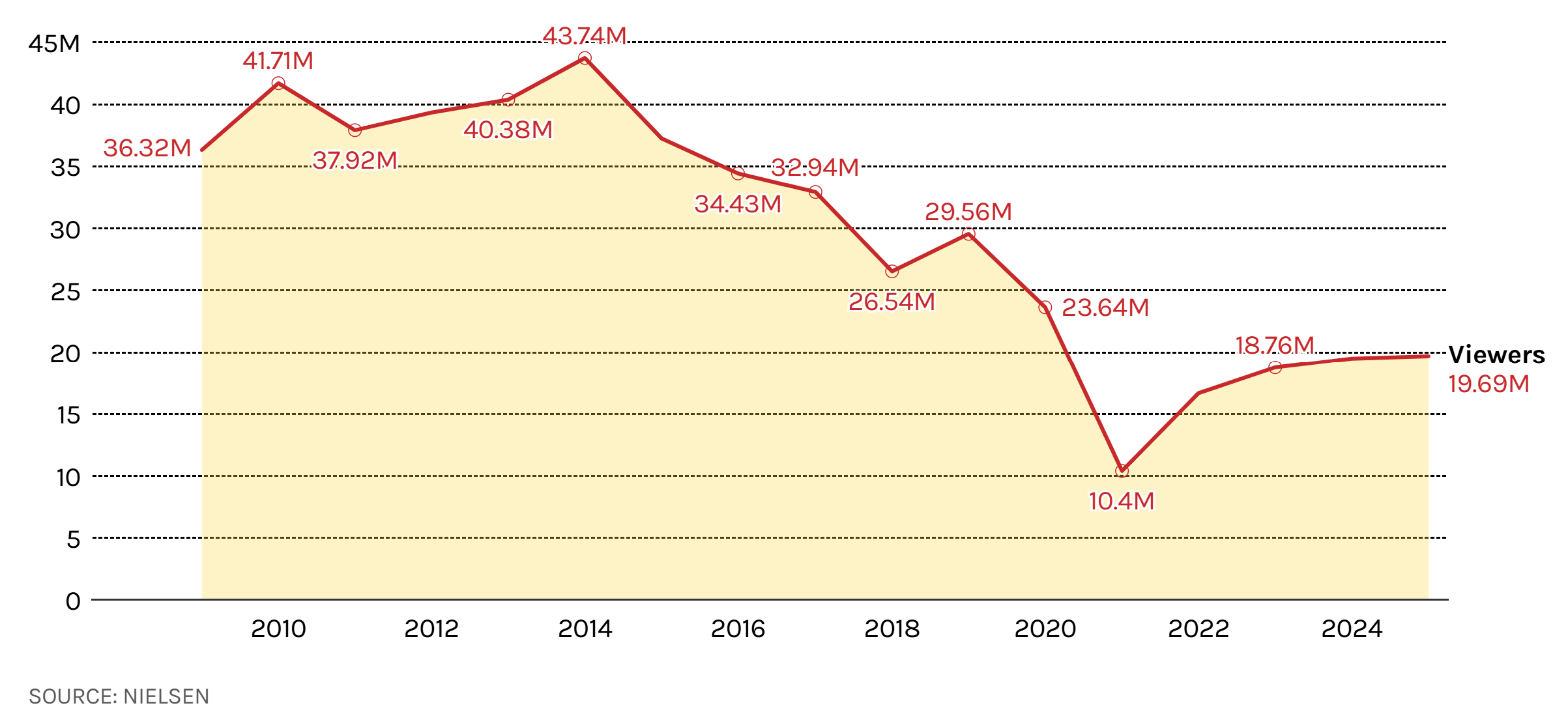 הצניחה הממושכת ברייטינג האוסקר לאורך השנים (מקור: הוליווד ריפורטר):