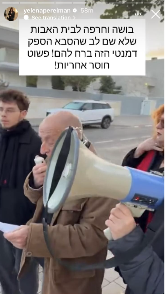 פרלמן, המקורבת לשר התרבות, פרסמה תמונה של ברבש מההפגנה שנערך הבוקר מול ביתו של מיקי זוהר, ולצידו כתבה: "בושה וחרפה לבית האבות שלא שם לב שהסבא הספק דמנטי הזה ברח להם! פשוט חוסר אחריות!". כעבור כשעה הסטורי נמחק.