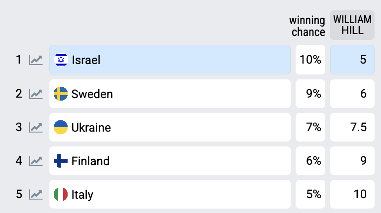 ישראל תבחר נציג לאירוויזיון רק בסוף החודש עם קיומו של גמר "הכוכב הבא" בקשת 12, אבל המעריצים כבר החלו להמר על הסיכויים של המדינות השונות בתחרות שתתקיים בעוד כחמישה חודשים • כעת ישראל מדורגת במקום ה-1 בטבלאות - שוודיה ואוקראינה אחריה