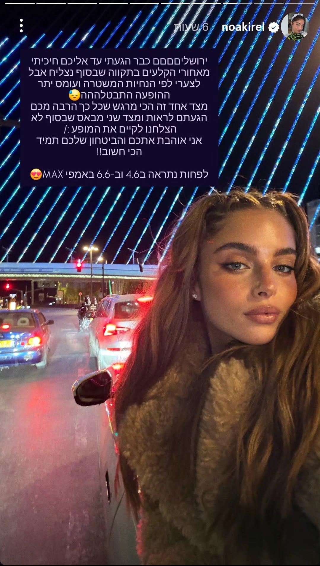 לצערי לפי הנחיות המשטרה ועומס יתר ההופעה התבטלה. מצד אחד זה הכי מרגש שככה הרבה מכם הגעתם לראות ומצד שני מבאס שבסוף לא הצלחנו לקיים את המופע :( אני אוהבת אתכם והביטחון שלכם תמיד