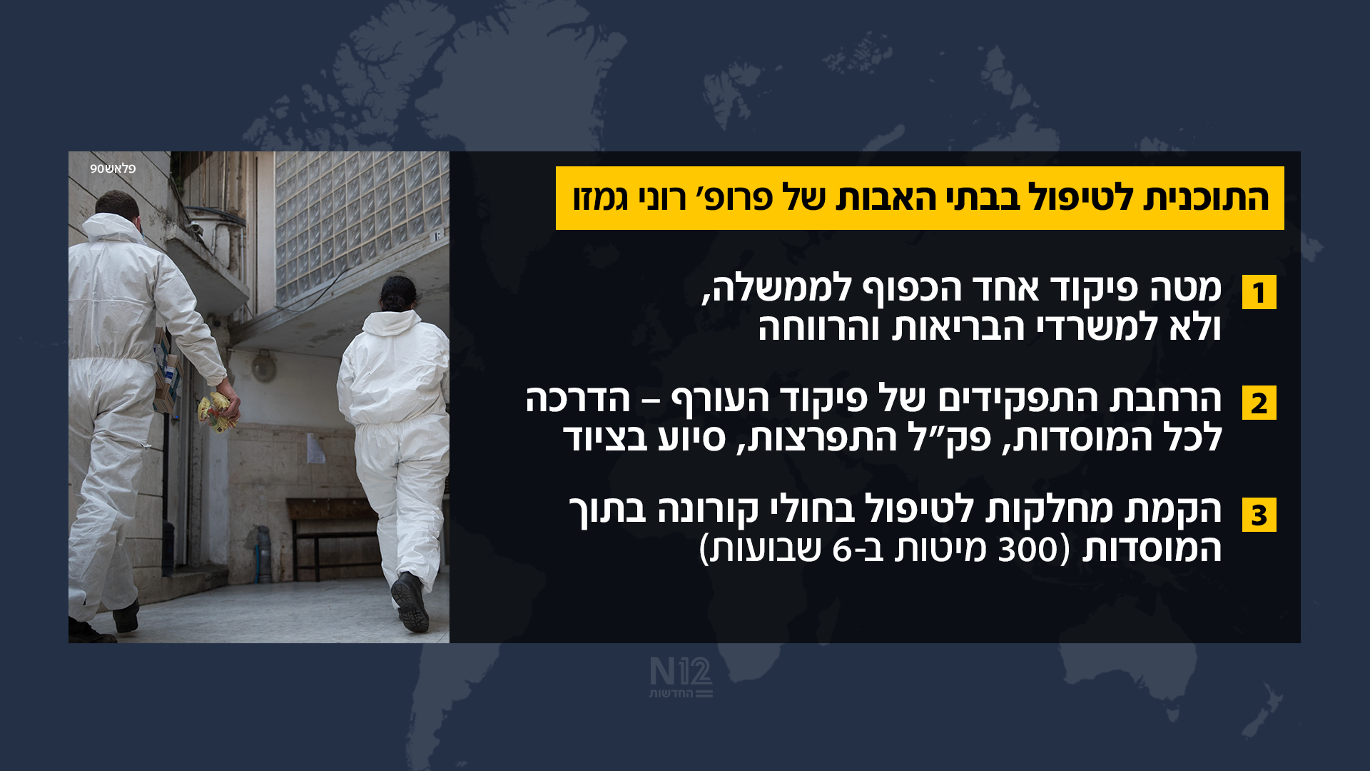 עדיף מאוחר מאשר לעולם לא: מנכ"ל בית החולים איכילוב פרופסור רוני גמזו, שמונה לפרויקטור לתחום בתי האבות, גיבש תוכנית לטיפול במשבר הקורונה בבתי האבות ודיור המוגן. הוא צפוי להגיש אותה מחר למנכ"ל משרד הבריאות