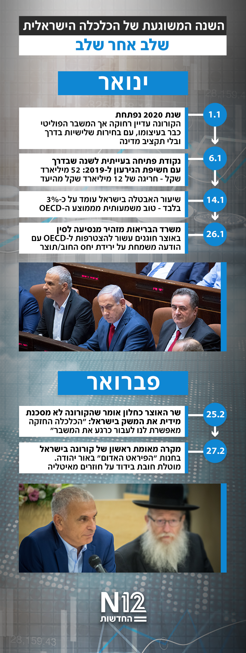 אם שנת 2020 הרגישה לכם ארוכה במיוחד, יתכן שזה מרוב עומס אירועים ותהפוכות שיכולים להספיק לעשור שלם. כשמסתכלים בדיעבד על השנה הקשה שעברה ומסדרים את כל הדרמות הכלכליות לתרשים זרימה, מתבהר התהליך שעברה המדינה לאורך ההידרדרות במשק – דווקא בשנה היחידה בהיסטוריה הישראלית שלא אושר עבורה תקציב מדינה.