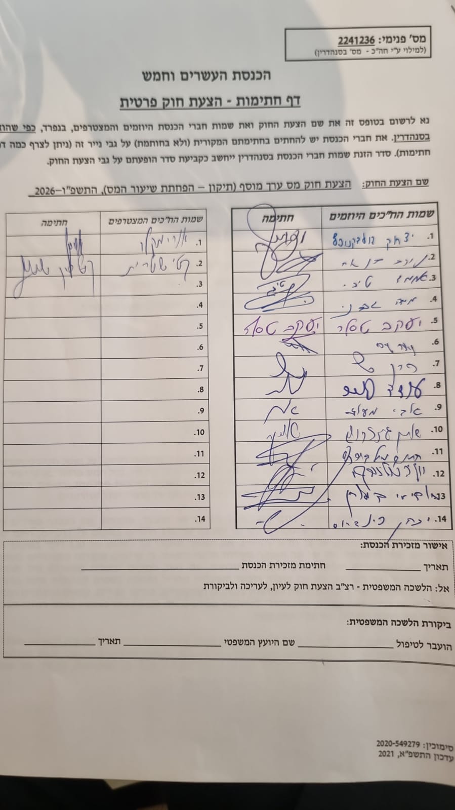 קואליציה לצד אופוזיציה: החתומים על ההצעה