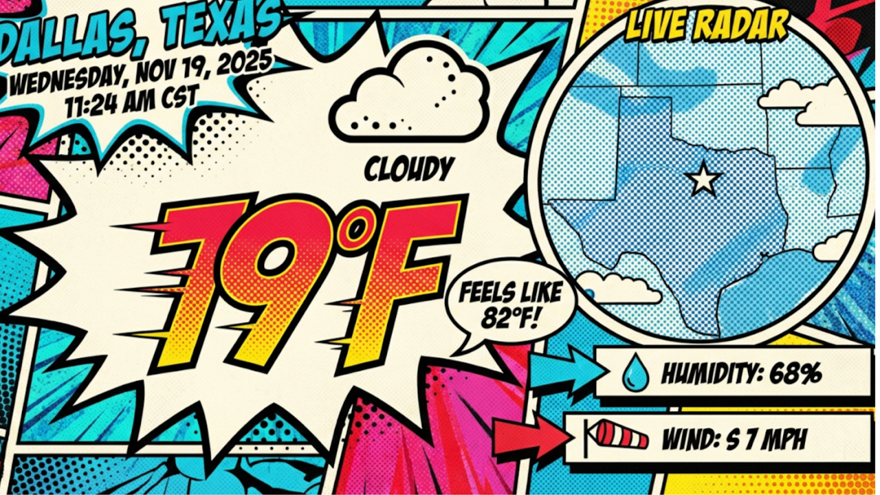 וכאן, השתמשו בבינה כדי לשלוף נתוני מזג אוויר בזמן אמת ולעצב אותם כפופ-ארט