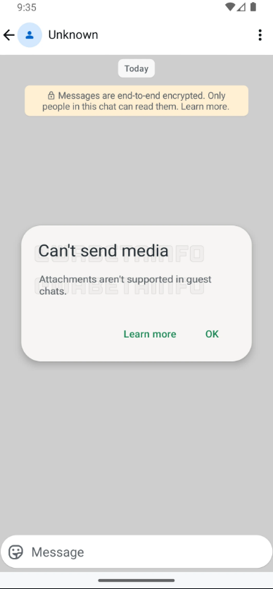 יחד עם זאת, זה לא יהיה כמו צ'אט רגיל, אלא יהיו בו כמה הגבלות משמעותיות: לא ניתן יהיה לשתף קבצי מדיה (תמונות, סרטונים וגיפים), לא תתאפשר שליחה של הודעות קוליות או וידאו ולא ניתן יהיה לבצע שיחות קול או וידיאו בשיחות אלה. בנוסף, שיחות אורח יתמכו רק בשיחה פרטית (אחד על אחד) ולא בקבוצות. בעצם הדבר היחיד שתוכלו לעשות זה להתכתב עם אדם אחר בודד, ואולי לשכנע אותו להוריד את האפליקציה.