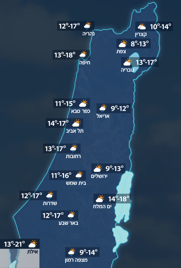 במהלך הלילה הגשם נחלש משמעותית. היום (שישי) בשעות הבוקר עוד ייתכן גשם מקומי במרכז ובדרום. עדיין קיימת אפשרות לזרימה בנחלי הדרום, ויש להיזהר משיטפונות. בהמשך היום הגשמים ייפסקו, והטמפרטורות יהיו רגילות לעונה - בעוד שבהרים צפוי קריר מעט מהרגיל.