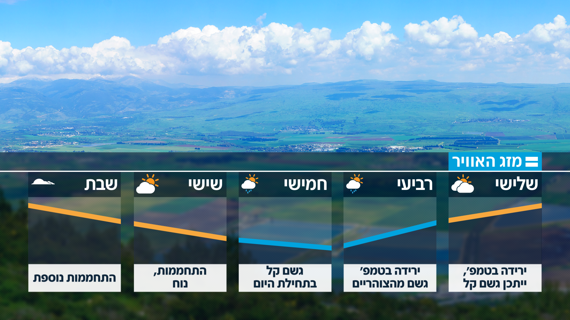 מזג האוויר: נוח, עם ירידה בטמפטורות ואפשרות לגשם קל