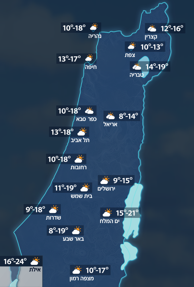 הטמפרטורות החזויות להיום: