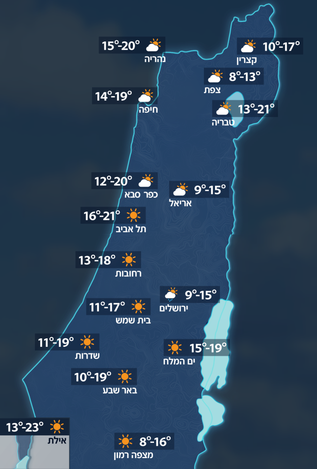 הטמפרטורות החזויות להיום: