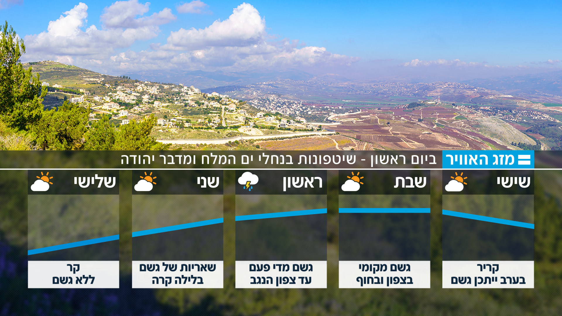 הטמפרטורות יטפסו מעט, לפני מערכת גשם קלה
