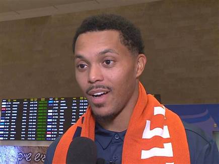 "קודם כל אני מתרגש, זו פעם ראשונה שלי כאן. האפשרות לשחק כאן הייתה כזו שלא יכולתי לוותר עליה. לא שיחקתי כדורסל תקופה ארוכה וזה זמן טוב לחזור, בטח כאן".