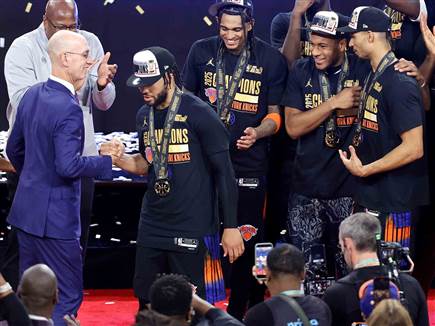 ניו יורק ניקס זכתה הלילה (בין שלישי לרביעי) בגביע ה-NBA השלישי אי פעם אחרי שניצחה 113:124 את סן אנטוניו של ויקטור וומבניאמה בלאס וגאס, כאשר ג`יילן ברונסון סיים עם 25 נקודות לצד 8 אסיסטים ונבחר ל-MVP.