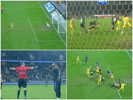 בדקה ה-65 הגיע שער של שגיב יחזקאל, כאשר בבדיקת ה-VAR נקבע כי השחקן היה בנבדל, מה שהוביל לפסילת השער, אך במקביל זכו הצהובים לפנדל בעקבות עבירה של נועם כהן על רוי רביבו רגע לפני הנבדל של יחזקאל.