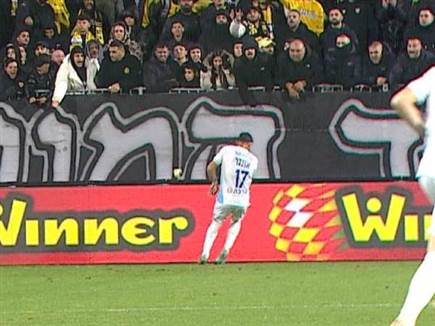 רגע חריג על הדשא באיצטדיון בראל בנוף הגליל. מעט לאחר שער השיוויון של עומר אצילי, שאיזן ל-1:1 בין טבריה ובית"ר ירושלים בגביע המדינה (בדרך למהפך והעפלה לשמינית הגמר של הצהובים שחורים), בקבוק נזרק מיציע אוהדי בית"ר ופגע בראשו של רון אונגר, שהגיע כדי להוציא כדור חוץ.