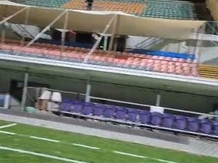 היציע המדובר משמש לשחקנים שאינם בסגל ואנשי צוות שאינם יושבים על הספסל. "יש הרבה גשם, אבל כר הדשא מצוין ויעמוד בזה", אמרו הבוקר באחי נצרת, "אין סכנה לכך שהמשחק לא יתקיים ויהיה כדורגל איכותי".