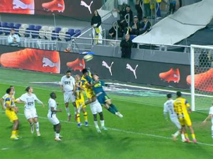 שוער ריינה ליאור גליקליך ניסה לאגרף כדור קרן אך פגע בפניו של דור פרץ. לאחר בדיקת VRA, יגאל פריד הצביע על הנקודה הלבנה. האם הגיע פנדל למכבי ת"א? הצביעו בסקר >>>