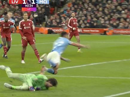 ייתכן וזהו רגע שמשנה עונה. בדקה ה-91 של המשחק שנערך הערב (ראשון) בין ליברפול למנצ`סטר סיטי - מתיאוס נונש, שחקנה של סיטי, ספק הוכשל ע"י שוער ליברפול אליסון. השופט קרייג פוסון החליט לשרוק לפנדל - אותו ניצל ארלינג הלאנד, כבש לזכות סיטי והשלים 1:2 ומהפך ענק.
