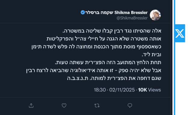 המפכ"ל הנחה לבחון פתיחת חקירה נגד שקמה ברסלר פרסום ראשון 02.11.25