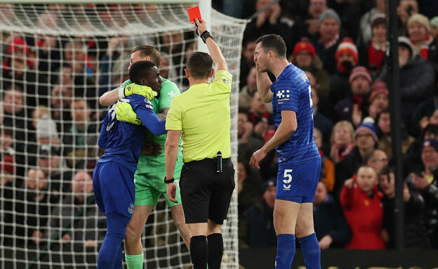 אירוע הזוי באנגליה: השחקן הורחק לאחר עם חברו אידריסה גיי סטר לבן קבוצתו וקיבל אדום 25.11.25