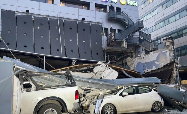 קיר קרס על מדרכה בהרצליה - נזק רב במקום צוות של פיקוד העורף הוזנק למקום 03.03.22