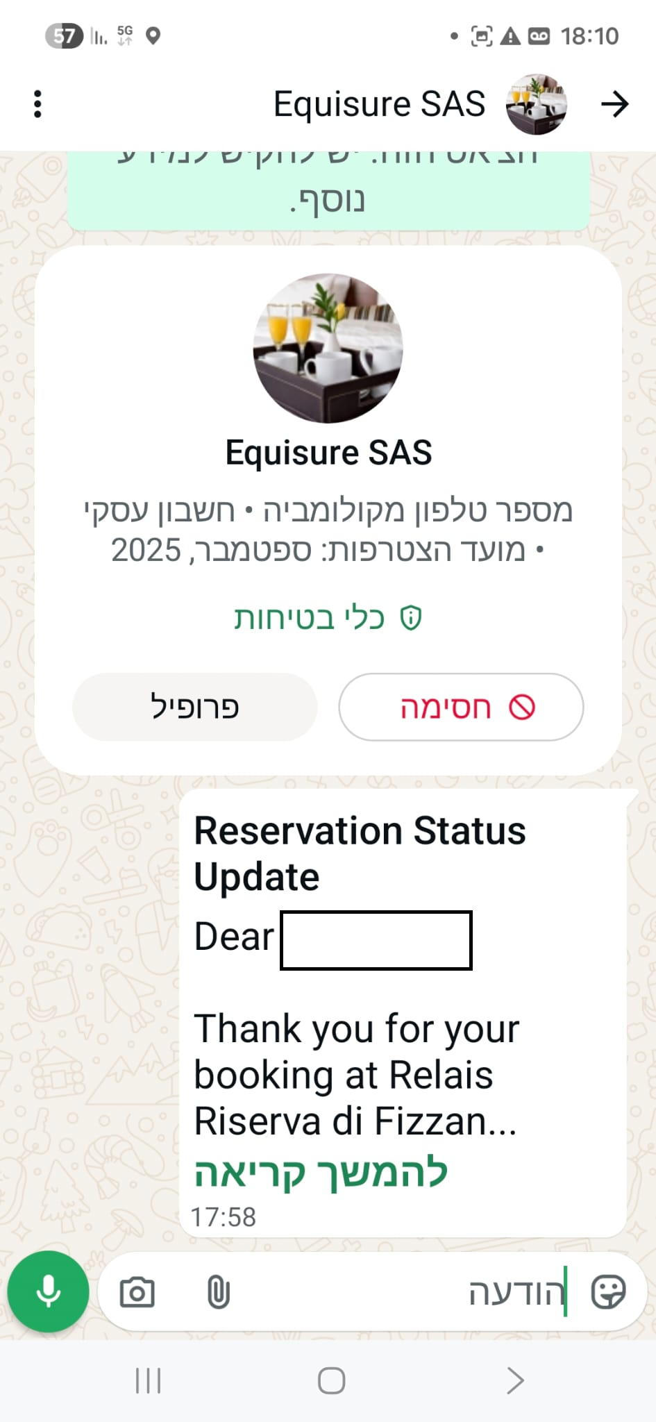 דביר כהן, יזם ומנהל קהילת "אמזון בקליק", הזמין בחודש נובמבר 2025 מלון ברומניה לו ולבני משפחתו. כחודש לאחר מכן, בזמן שעבד לדבריו מול לקוחות בחו"ל, קיבל באחד הערבים הודעת וואטסאפ מחשבון עסקי הממוקם בארה"ב. בהודעה התבקש כהן לאשר את שהותו במלון שהזמין בבוקרשט בתאריכים הרלוונטיים, תוך שימוש במספר ההזמנה המדויק שלו, וללחוץ על קישור. "אל דאגה, לא יתבצע חיוב", נכתב שם.