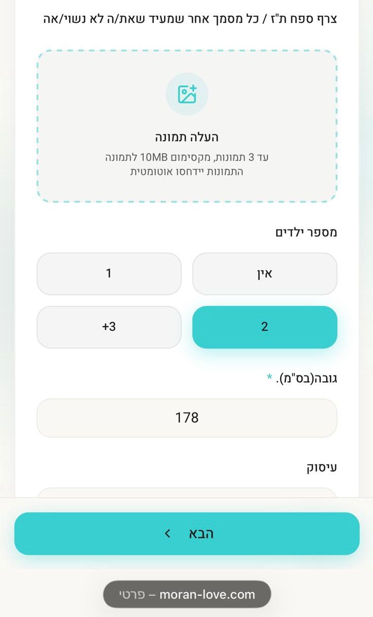 לאחר שהשתקמה מ"אלימות שקופה", מורן אייזנשטיין משיקה אתר היכרויות המחייב הצגת ספח תעודת זהות לאימות רווקות, במטרה להציע אלטרנטיבה לאפליקציות ה"מהירות", ובראשן טינדר. מעבר לאלגוריתם, היא מבטיחה מעורבות אישית מלאה: מעבר ידני על הלייקים, סינון ומשלוח המלצות יזומות לחיבורים - גם אם הצדדים לא סימנו לייק זה לזה