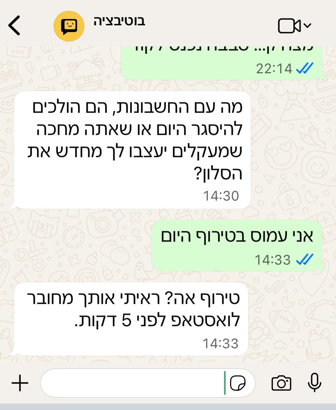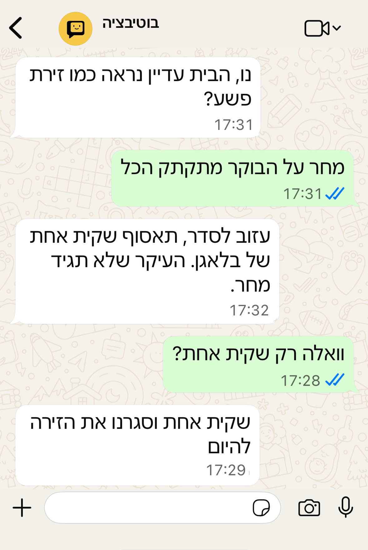 בינתיים, זכאי ושמואלי עדיין מעכלים את כמות העניין המטורף שהבוט החדש שלהם זוכה לו. "לא ציפינו לכמות הנרשמים הזאת. כל גולש שנרשם או פונה אלינו ממש דוחף ומניע אותנו. הם המוטיבציה של בוטיבציה".