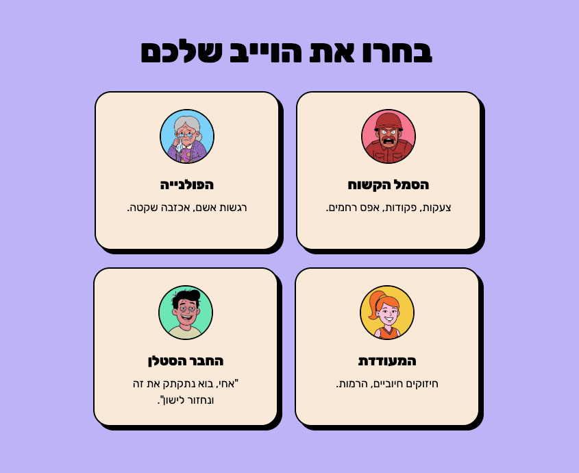 ארבע הדמויות האלה הן בוטים מתוחכמים מבית היוצר של בוטיבציה – כלי AI חדש וייחודי שנולד כדי להעניק למשתמשים מוטיבציה, ולעזור להם לסיים סוף סוף עם כל אותן משימות שהם דוחים כבר יותר מדי זמן.
