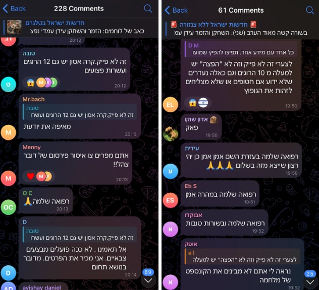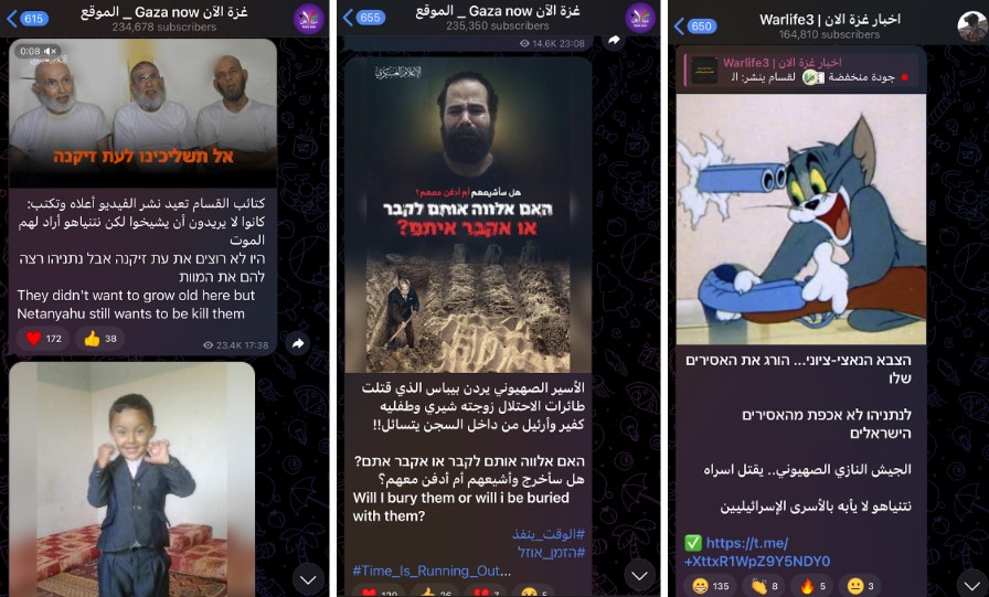 אורפז מוסיפה כי גם האויבים שלנו מבינים את חשיבות הטלגרם: "בערוץ Gaza Now היו הרבה פעמים מסרים בעברית שמיועדים לאזרחים ישראלים", ומזכירה מקרים של ישראלים שגויסו כסוכנים איראנים דרך הפלטפורמה.