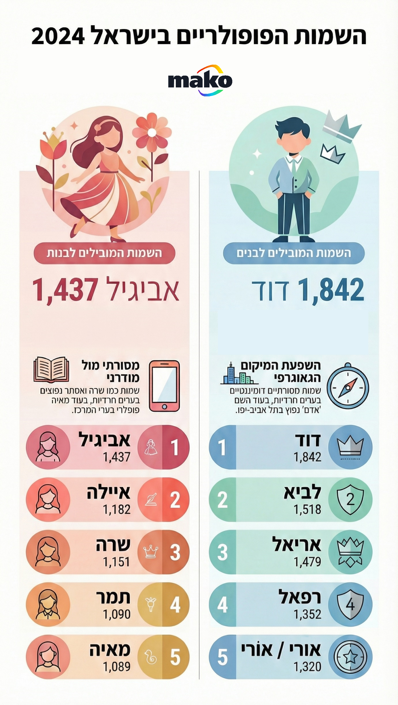 כשהתינוק או התינוקת בדרך, כל שם הופך לפתע להשראה ולשאלה גדולה – להיות בטרנד, להיות ייחודי או סתם חמוד? השנה, הלמ"ס חושף מי מוביל בשמות בישראל, כמו מוחמד, אביגיל או דוד, ואיזה שמות זינקו או צנחו בהפתעה?
