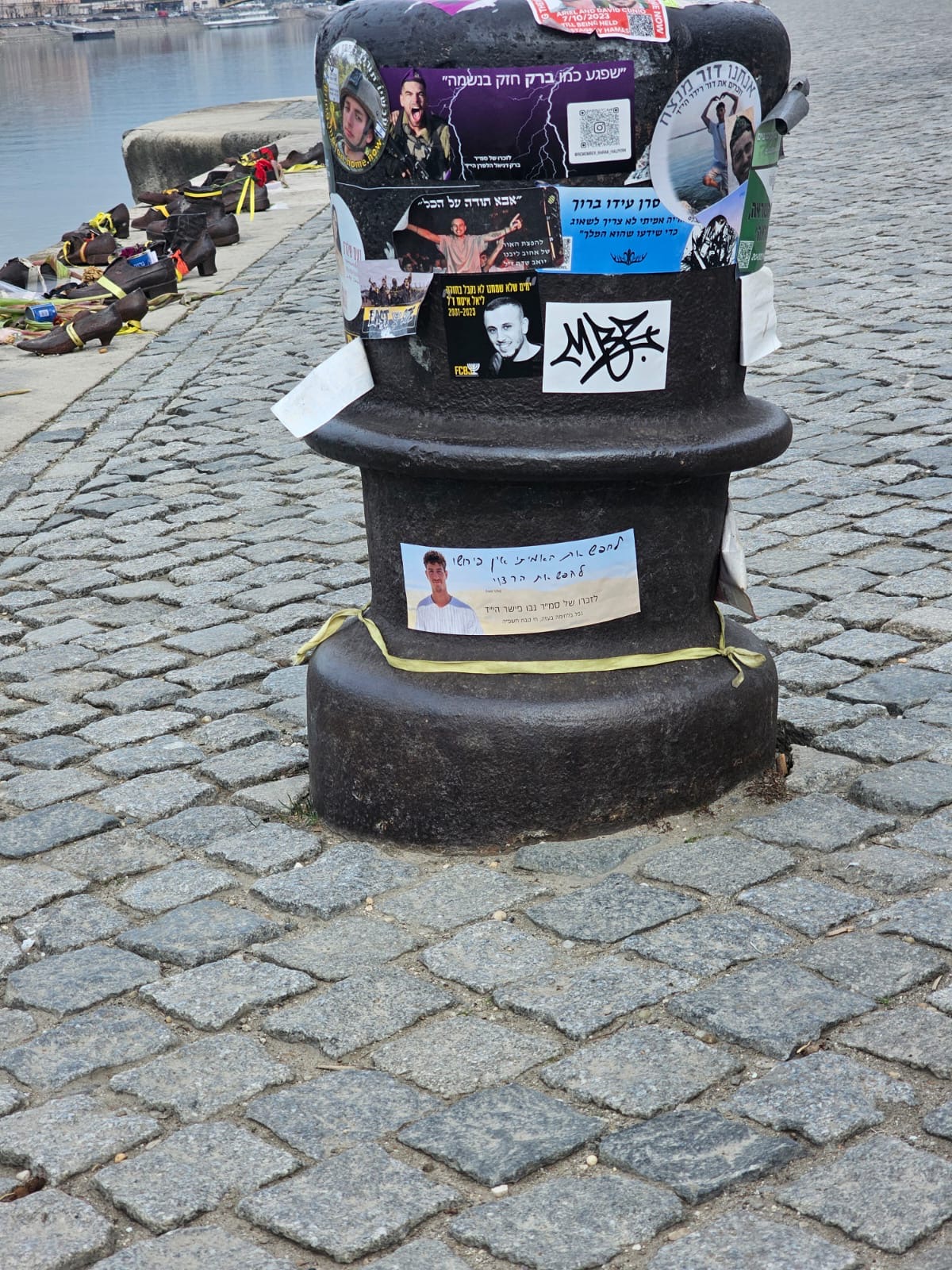 סטיקר של נבו באנדרטת הנעליים לזכר יהדות הונגריה שנרצחה בשואה | צילום: עדי מזובר