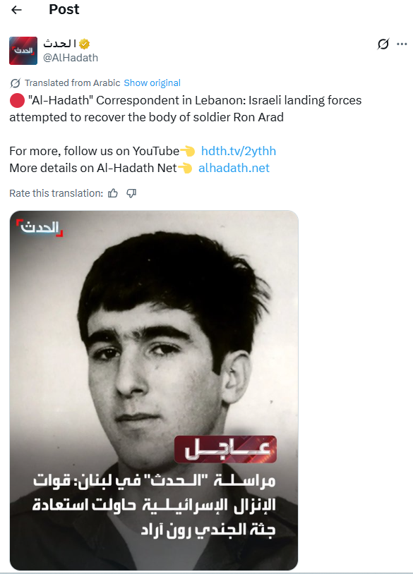 המבצע המיוחד בלבנון: הממצאים שהובאו לא היו של רון ארד