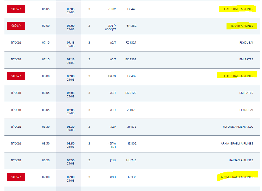 - החברות שיקבלו אישור לנחות הן החברות הישראליות בלבד: אל על, ישראייר, ארקיע, אייר חיפה.