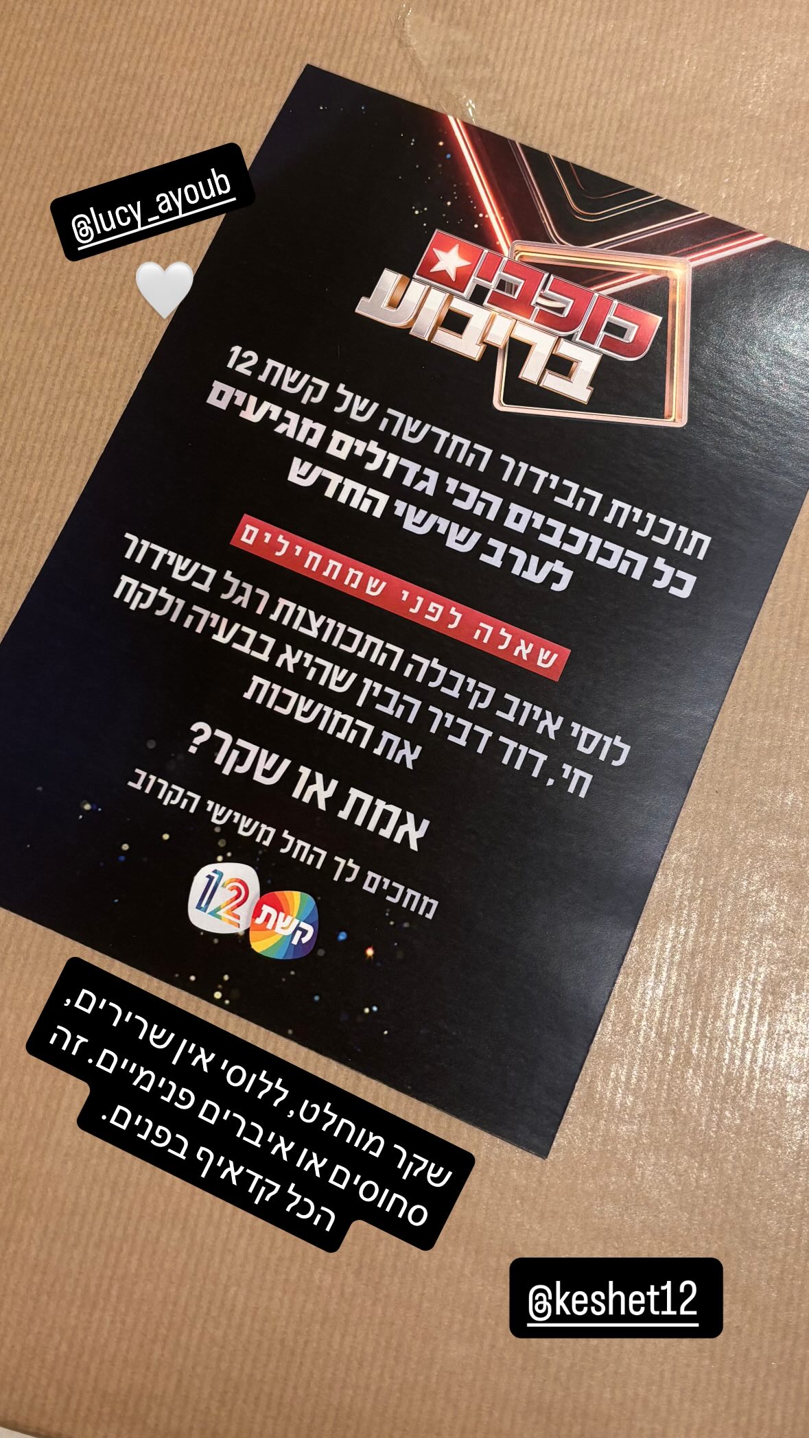 מי שעוד שיתפו את המארז שקיבלו הם גורי אלפי ולוסי איוב. איוב העלתה לחשבון האינסטגרם שלה תמונה של בתה הקטנה, משחקת בלוח המשחק וכתבה: "נאיה כבר מתכוננת לשישי בערב". אלפי, שנשאל אם לוסי איוב קיבלה התכווצות שרירים בשידור חי, כתב בהומור: "שקר מוחלט. ללוסי אין שרירים, זה הכל קאדיף בפנים".